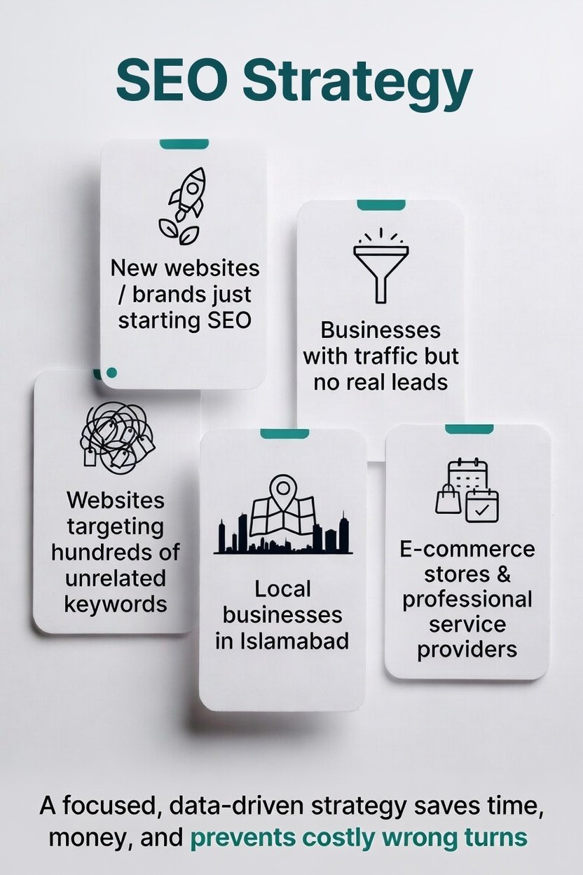 At SEO Services Islamabad, we focus on keyword research and SEO strategy built around search intent, local relevance, and business goals, not guesswork or keyword stuffing.