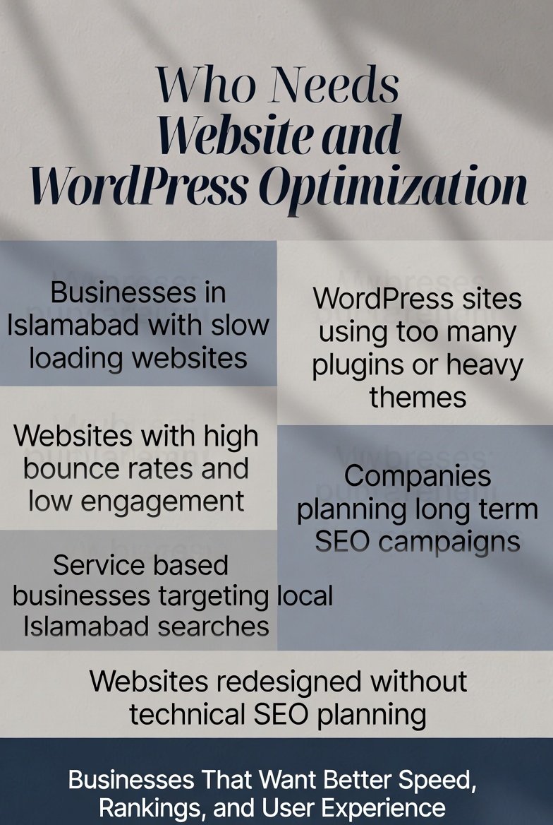 Our website and WordPress optimization services in Islamabad are ideal for: